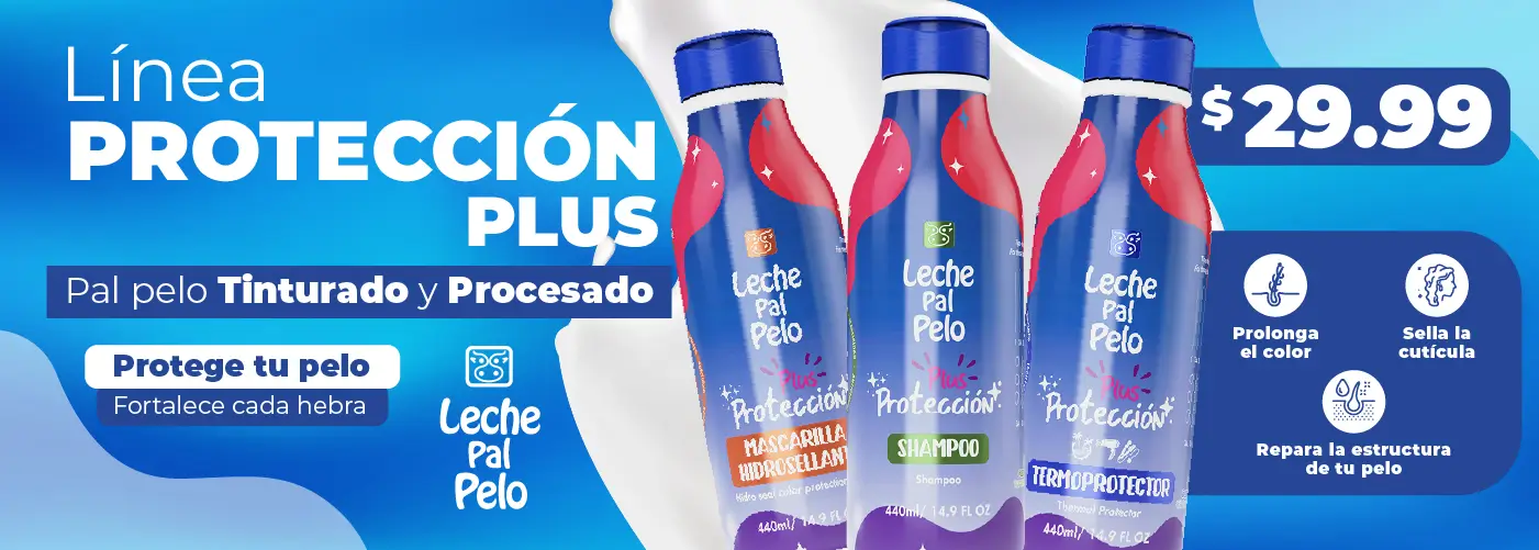 Si tu pelo ha pasado por tintes, alisados o procesos químicos, la Línea Protección Plus es tu mejor aliada. Nutre, repara y protege el color mientras sella la cutícula capilar.